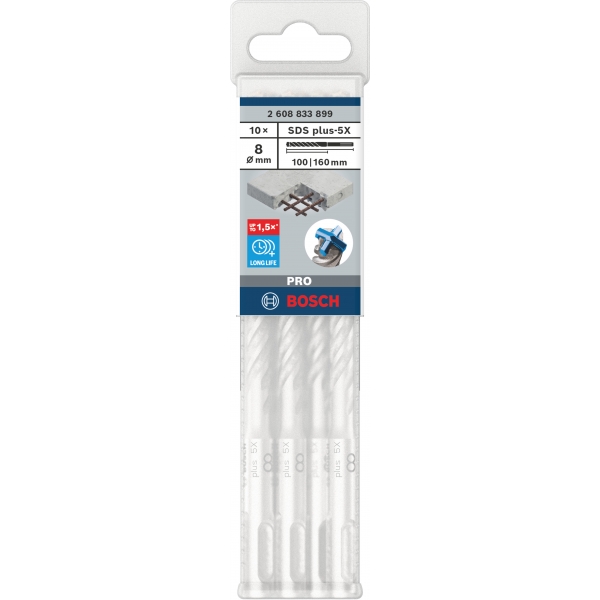 Fabricat dintr-o cruce incorporata din carburi de tungsten de inalta calitate, varful cu 4 muchii taietoare al burghiului PRO SDS plus-5X ofera o utilizare confortabila profesionistilor care au nevoie sa realizeze gauri precise in beton armat. Burghiul de zidarie are 4 caneluri care indeparteaza praful de punctul de impact si asigura o performanta eficienta si de lunga durata.