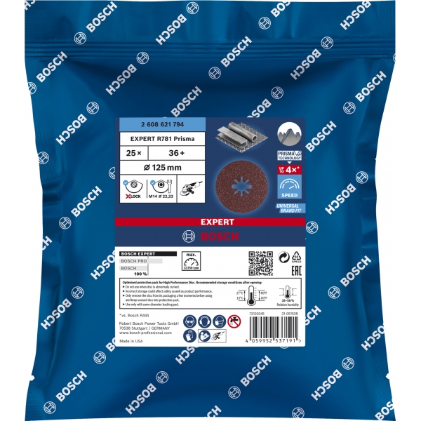 Fibrodiscul Bosch EXPERT R781 pentru metal permite slefuirea mult mai rapida a metalului comparativ cu discurile conventionale, fara a face compromisuri in privinta calitatii. Prin urmare, ofera un salt inainte in productivitate pentru profesionistii care folosesc polizoare unghiulare.