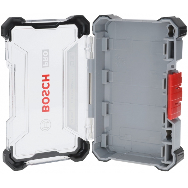 PRO Case te ajuta sa iti organizezi bitii de insurubare, burghiele si suruburile si sa le depozitezi in siguranta. Poti bloca si deschide cu usurinta cutia. Este compatibila cu cutiile Bosch Pick and Click si suporturile de biti de insurubare din plastic, ceea ce inseamna ca ii poti monta cu usurinta in aceasta pentru a-ti construi propria trusa de accesorii.