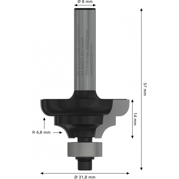 Informatii suplimentare Freza cu rulment de ghidare si doua taisuri din carburi metalice
