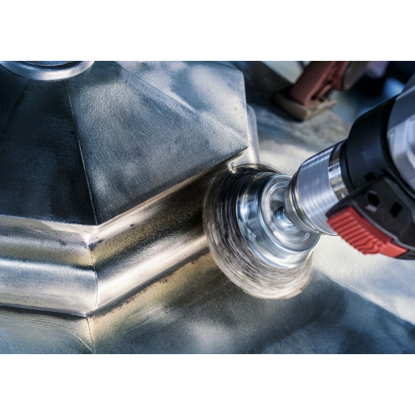 Peria-oala PRO Metal clean va fi un accesoriu excelent si durabil pentru orice atelier de prelucrare a metalelor unde trebuie sa cureti imbinarile sudate si sa indepartezi rugina, vopseaua veche si straturile de acoperire. Am prevazut-o cu sarma ondulata premium pentru a ne asigura ca vei obtine un finisaj fin pe suprafete mai mari de otel. Sarma mai groasa este potrivita pentru finisaje rapide si grosiere, in timp ce cea mai subtire iti ofera suprafete mai fine si mai netede.