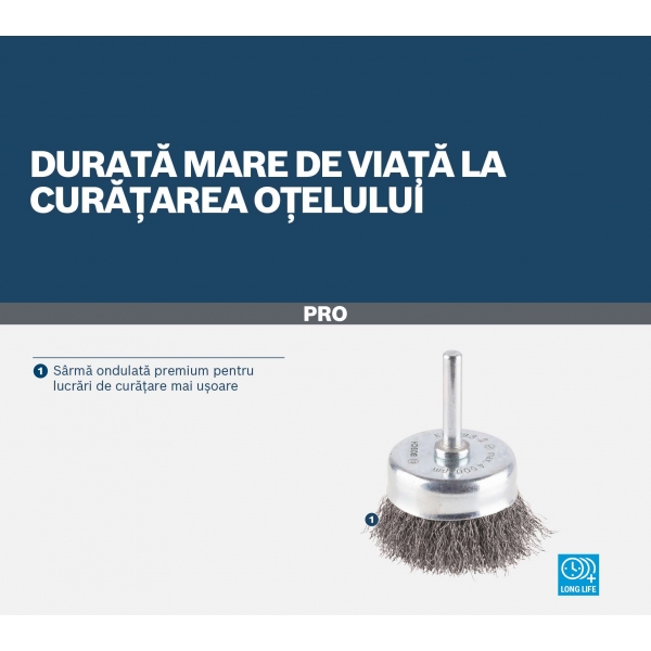 Ai nevoie de o perie-oala durabila pentru a curata suprafetele de otel? Incearca peria-oala PRO Metal clean. Am prevazut-o sarma de inalta calitate ondulata pentru a ne asigura ca va indeparta rugina, vopseaua si straturile de acoperire vechi si te va ajuta sa indeplinesti toate sarcinile de polizare si slefuire mata.