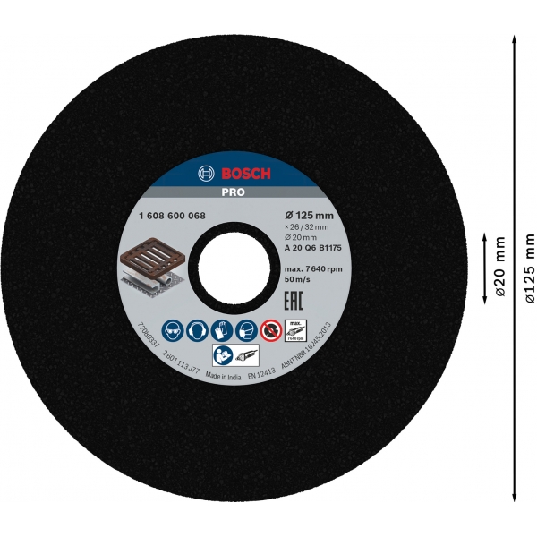 | Informatii suplimentare | Diametrul interior: 20 mm Diametru exterior: 125 mm Grosime (b1): 26 mm Grosime (b2): 32 mm Granulatie: 20 Compatibilitate: GGS 6 S |