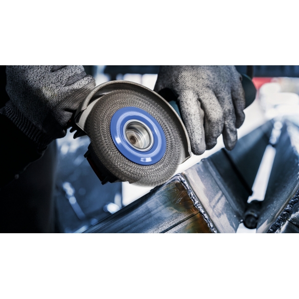 Peria-disc de sarma PRO Metal heavy este un accesoriu durabil pe care vei dori sa-l ai la indemana in atelierul tau de prelucrare a metalelor. Am prevazut-o cu sarma premium cu toroane pentru a ne asigura ca poate face fata sarcinilor dificile de curatare in mod eficient. Peria-disc de sarma este o alegere excelenta atunci cand trebuie sa indepartezi imbinarile sudate, sa debavurezi si sa cureti suprafetele, marginile si canelurile mici din otel.