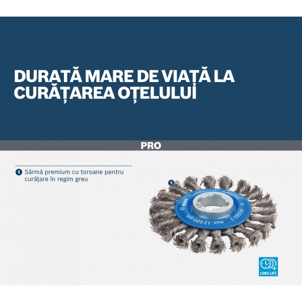Esti un lucrator in metalurgie care are nevoie de o perie-disc de sarma pentru a te ajuta sa obtii un finisaj grosier in zone mici, greu accesibile? Peria-disc de sarma PRO Metal heavy este prevazuta cu sarma cu toroane de inalta calitate, pentru a te asigura ca o poti utiliza la lucrari grele - din nou si din nou.