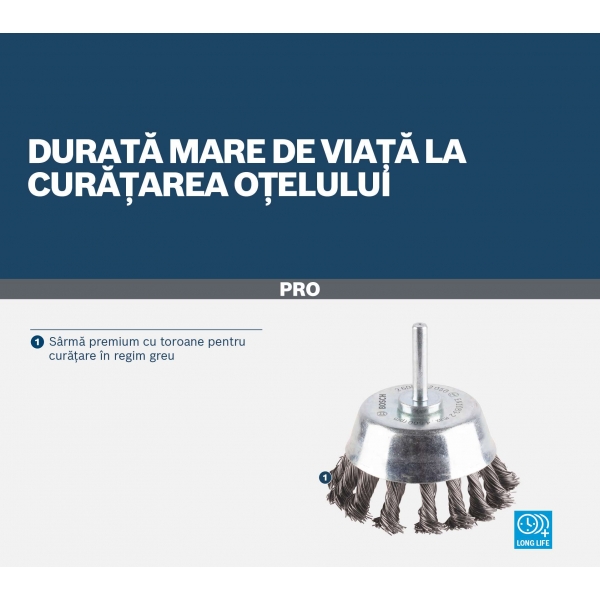 Peria-oala PRO Metal heavy va fi un accesoriu durabil pentru orice atelier de prelucrare a metalelor unde trebuie sa cureti cordoanele de sudura si sa indepartezi rugina, vopseaua veche si straturile de acoperire. Am prevazut peria-oala cu sarma premium cu toroane pentru a ne asigura ca o poti folosi cu eficienta pentru lucrarile de curatare. Sarma mai groasa este potrivita pentru finisaje rapide si grosiere, in timp ce cea mai subtire iti ofera suprafete mai fine si mai netede.