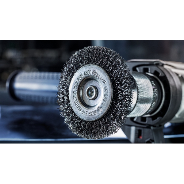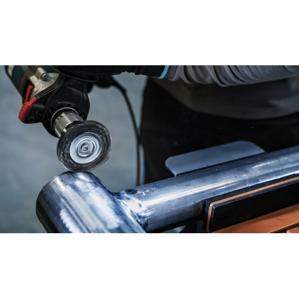 Peria-disc de sarma PRO Metal heavy este un accesoriu durabil pe care iti doresti sa il ai la indemana in atelierul tau de prelucrare a metalelor. Am prevazut-o cu sarma premium cu noduri pentru a ne asigura ca poate aborda eficient sarcinile de curatare. Peria-disc de sarma este o alegere excelenta atunci cand trebuie sa debavurezi, sa decapezi si sa cureti suprafetele, marginile si canelurile mici din otel.