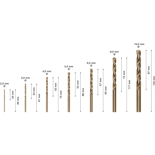 | Informatii suplimentare | Dimametru burghie: 2, 3, 4, 5, 6, 8, 10 mm Lungime de lucru: 24, 33, 43, 52, 57, 75, 87 mm Lungime totala: 49, 61, 75, 86, 93, 117, 133 mm |