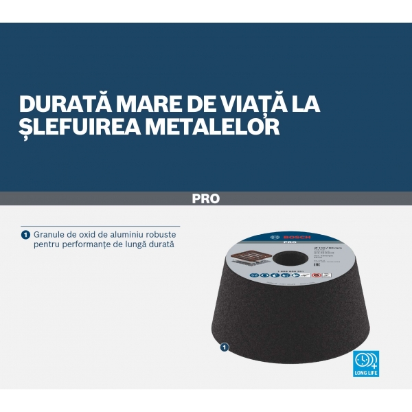 Ai nevoie de o piatra-oala de polizare puternica si durabila pentru a curata suprafetele metalice si din fonta sau pentru a reascuti uneltele? Combinatia dintre granulatia abraziva premium si materialul de lipire puternic ofera pietrei-oala PRO Metal rezistenta de care ai nevoie pentru a duce treaba la bun sfarsit.