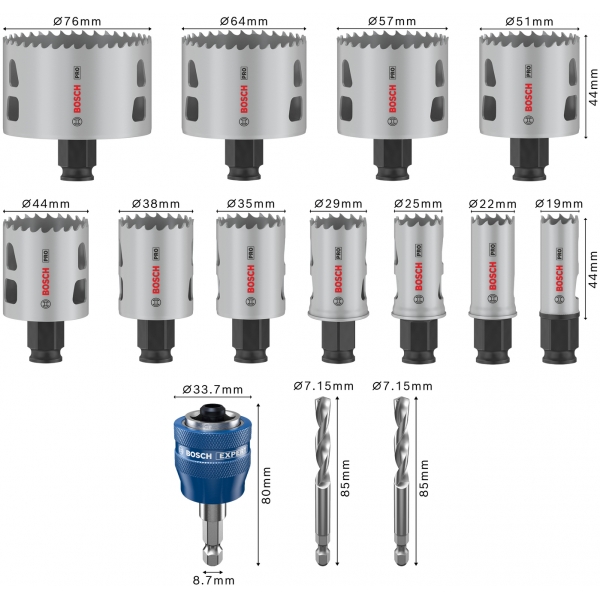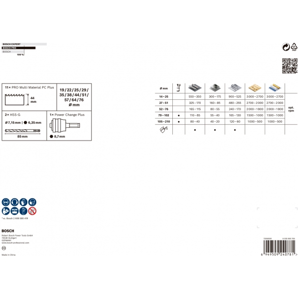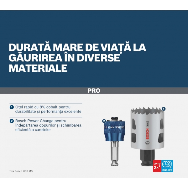 Carota PRO Multi Material are un model imbunatatit al dintilor pentru taieturi rapide si netede si dinti din aliaj HSS cu continut ridicat de cobalt pentru longevitate. Aceasta taie eficient placarile din otel si placile din gips-carton. Sistemul Power Change Plus permite schimbarea mai rapida a carotelor si burghielor pentru gauri pilot si faciliteaza indepartarea materialului taiat.