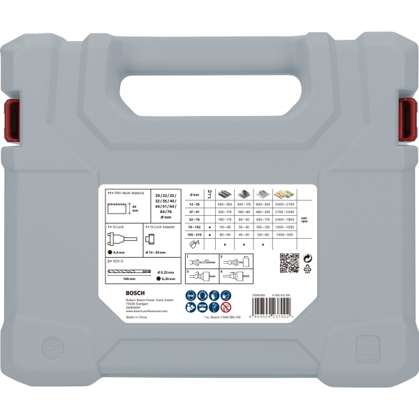 Carota PRO Multi Material are un model imbunatatit al dintilor pentru taieturi rapide si netede si dinti din aliaj HSS cu continut ridicat de cobalt pentru longevitate. Asigura o taiere eficienta a gaurilor in placajele din otel si placile de gips carton. Axul de prindere Q-Lock te ajuta sa schimbi mai rapid carotele si burghiele pentru gauri pilot si sa indepartezi mai usor dopurile de material.