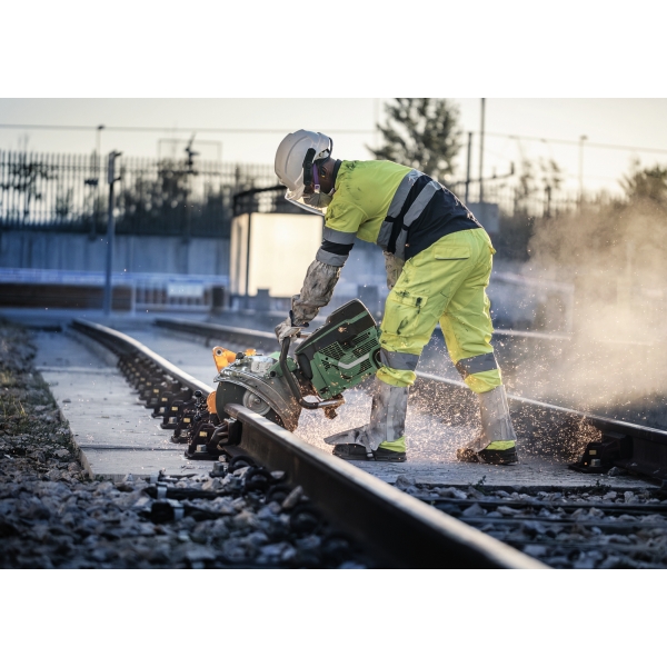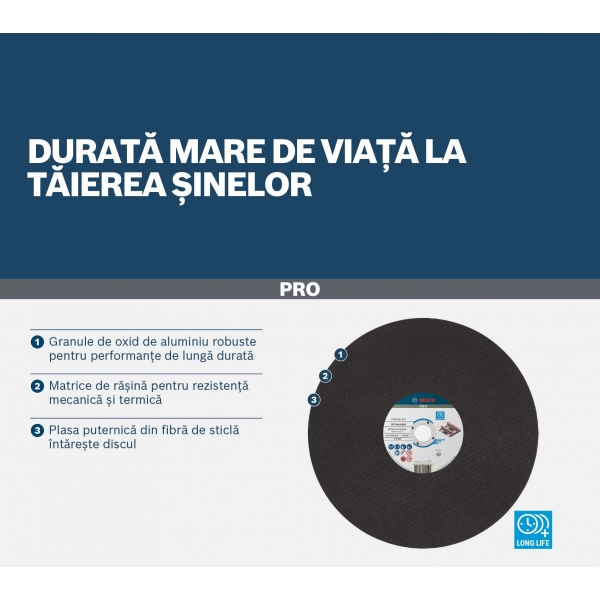 Discul de taiere PRO Metal Rail este un disc de taiere rezistent si fiabil pe care l-am proiectat pentru lucratorii de intretinere si constructii de cai ferate care au nevoie sa taie sine. Discul are o grosime de 4 mm si foloseste granule puternice de oxid de aluminiu pentru performante stabile si rezultate excelente de taiere. L-am proiectat cu doua straturi si jumatate de plasa din fibra de sticla de inalta calitate pentru a ne asigura ca este mai sigur de utilizat cu un motofierastrau.