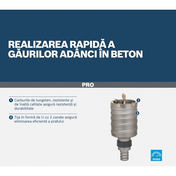 Proiectat pentru realizarea de gauri adanci in beton