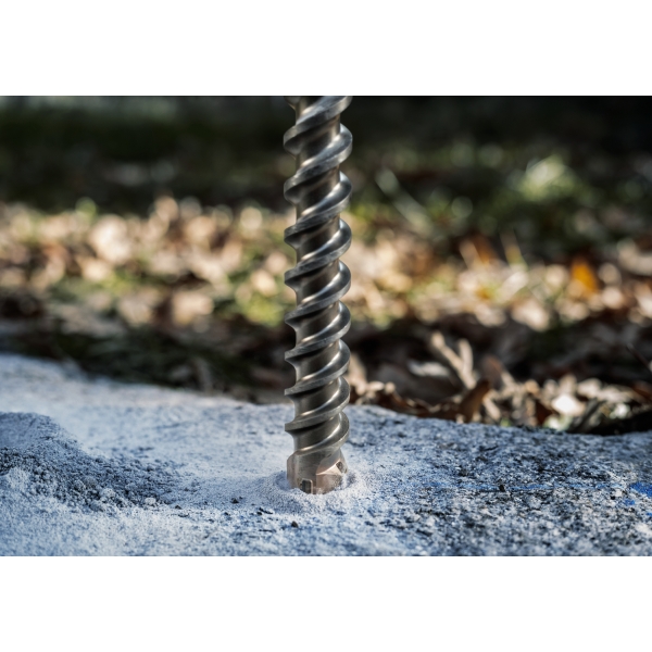 Burghiul PRO SDS max Natural Stone perforeaza materialul cu doua muchii taietoare principale si doua stifturi de baza laterale din carburi de inalta calitate. Acest lucru inseamna ca burghiul va aborda cu usurinta pietrele naturale si va rezista la uzura pentru o lunga perioada de timp. Canelurile sale au un design special pentru a reduce vibratiile si a indeparta praful in mod eficient.