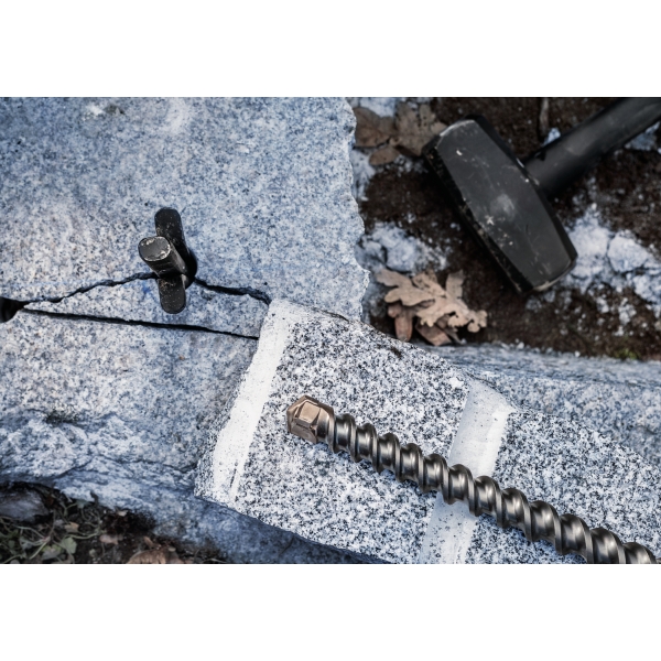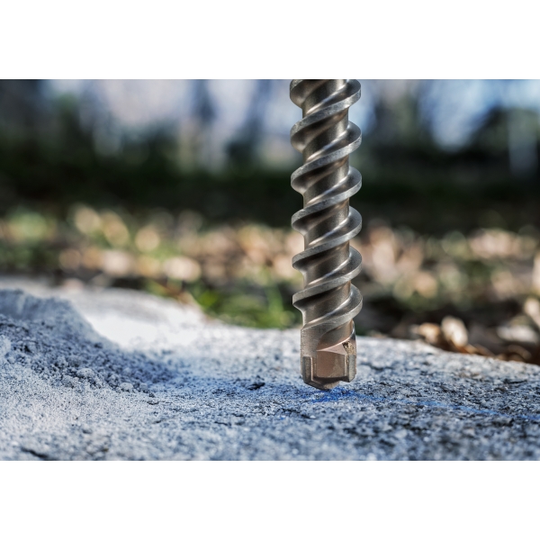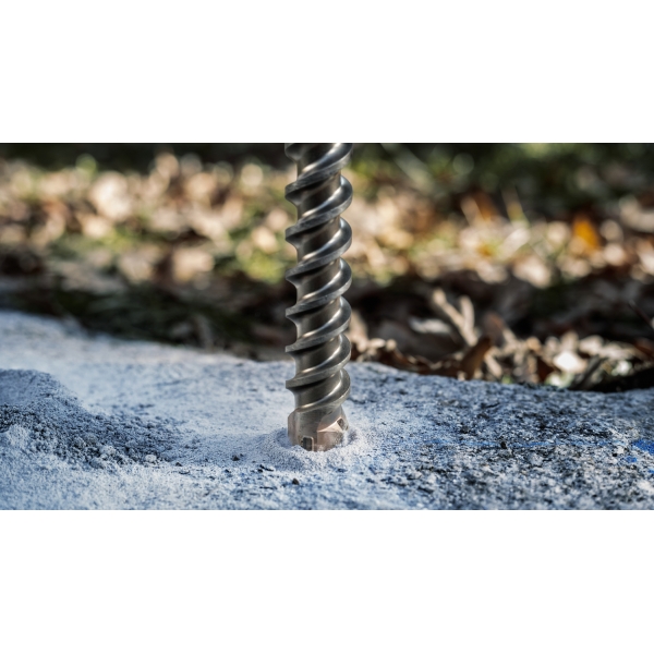 Burghiul PRO SDS max Natural Stone perforeaza materialul cu doua muchii taietoare principale si doua stifturi de baza laterale din carburi de inalta calitate. Acest lucru inseamna ca burghiul va aborda cu usurinta pietrele naturale si va rezista la uzura pentru o lunga perioada de timp. Canelurile sale au un design special pentru a reduce vibratiile si a indeparta praful in mod eficient.
