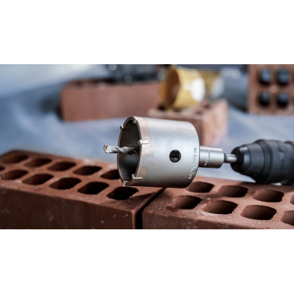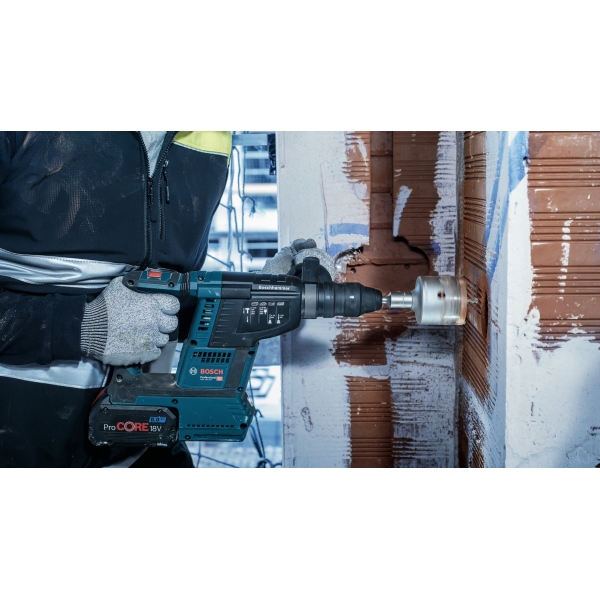 PRO SDS plus-5 Core Cutter foloseste dintii puternici din carburi pentru a asigura un progres exceptional al taierii si o durata lunga de viata. Dintii sunt asimetrici si se adapteaza la diametrul carotei, astfel incat sa poti realiza mai eficient gauri precise pentru cutiile de comutatoare si tevi.