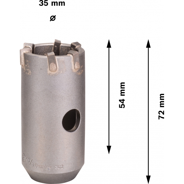 PRO SDS plus-5 Core Cutter foloseste dintii puternici din carburi pentru a asigura un progres exceptional al taierii si o durata lunga de viata. Dintii sunt asimetrici si se adapteaza la diametrul carotei, astfel incat sa poti realiza mai eficient gauri precise pentru cutiile de comutatoare si tevi.