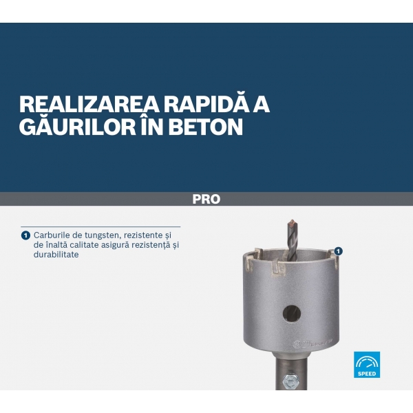 PRO SDS plus-5 Core Cutter foloseste dintii puternici din carburi pentru a asigura un progres exceptional al taierii si o durata lunga de viata. Dintii sunt asimetrici si se adapteaza la diametrul carotei, astfel incat sa poti realiza mai eficient gauri precise pentru cutiile de comutatoare si tevi.