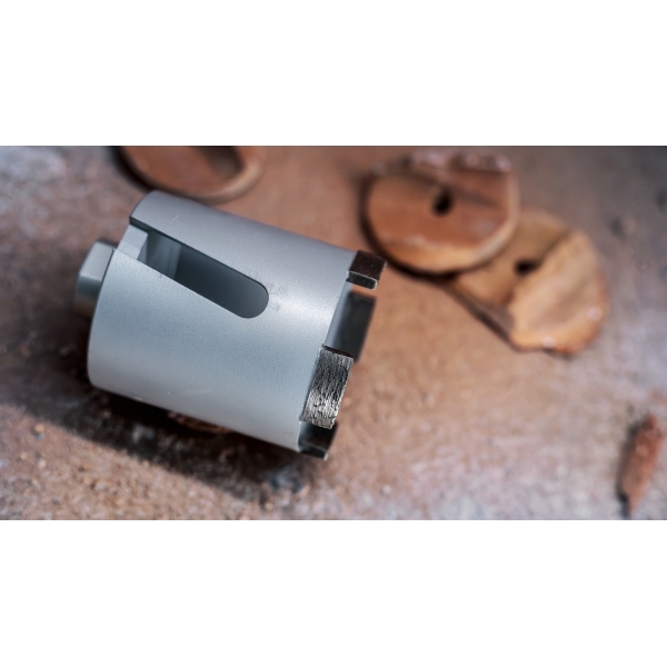 La baza calitatii si durabilitatii carotei PRO Socket Core Cutter dry se afla pulberile sale diamantate abrazive de inalta calitate, fixate intr-o matrice metalica premium optimizata pentru o durata mare de viata si o performanta excelenta.