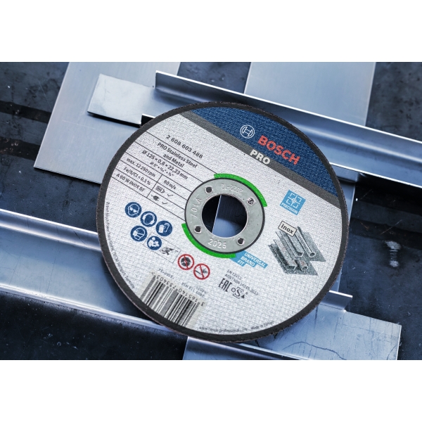 Discul de taiere din material compozit PRO Stainless Steel and Metal este un accesoriu de incredere pentru lucratorii in metal care folosesc polizorul unghiular cu acumulator pentru a taia otel inoxidabil si metale. Discul este foarte subtire pentru a asigura taieturi rapide si precise si o autonomie mai lunga a bateriei. Granulele sale abrazive sunt fabricate din oxid de aluminiu premium pentru rezistenta si durabilitate. Discul este ranforsat cu o plasa din fibra de sticla pentru a asigura o performanta mai sigura. In plus, l-am fabricat fara fier. De aceea, nu trebuie sa iti faci griji cu privire la rugina de pe piesa de lucru, daca tai doar otel inoxidabil.