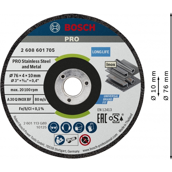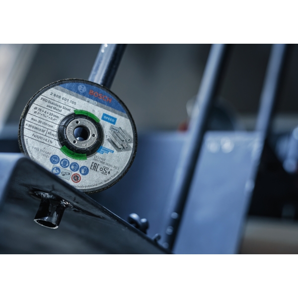 Discul de polizare PRO Stainless Steel and Metal este un disc durabil si fiabil pe care il poti folosi pentru a taia mai repede otel inoxidabil si metal. Discul foloseste granule abrazive premium pentru rezistenta. L-am consolidat cu o plasa din fibra de sticla pentru a asigura o performanta mai sigura. In plus, l-am fabricat fara fier. De aceea, nu trebuie sa iti faci griji cu privire la rugina de pe piesa de lucru, daca tai doar otel inoxidabil.