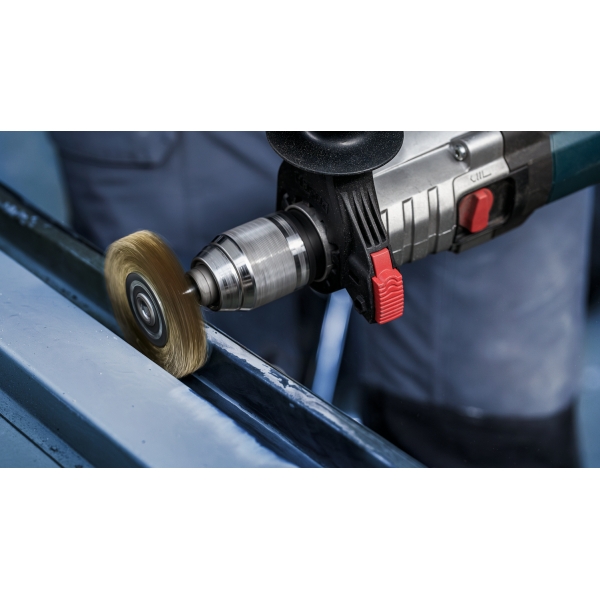 Am creat peria-disc de sarma PRO Stainless Steel clean cu sarma ondulata premium pentru a te asigura ca vei obtine un finisaj fin pe suprafetele metalice mici, pe margini si in caneluri. Aceasta perie-disc de sarma va fi o completare durabila pentru orice atelier de prelucrare a metalelor unde se curata otel inoxidabil si metale neferoase.