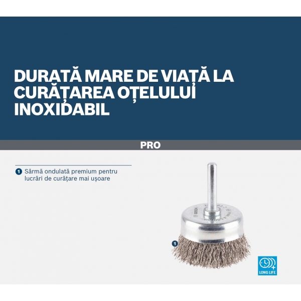 Peria-oala PRO Stainless Steel clean va fi un accesoriu excelent si durabil pentru orice atelier de prelucrare a metalelor unde trebuie sa cureti imbinarile sudate si sa indepartezi rugina, vopseaua si straturile de acoperire vechi. Am prevazut-o cu sarma ondulata premium pentru a ne asigura ca vei obtine un finisaj fin pe suprafete mai mari de otel. Sarma mai groasa este potrivita pentru finisaje rapide si grosiere, in timp ce cea mai subtire iti ofera suprafete mai fine si mai netede.