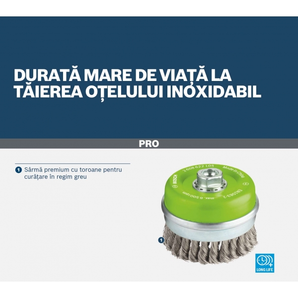 Esti un lucrator in metalurgie care trebuie sa curete otel inoxidabil si metale neferoase? Peria-oala PRO Stainless Steel heavy este un accesoriu potrivit pentru uz in regim greu. Functioneaza rapid si lasa suprafete curate si aspre de fiecare data.