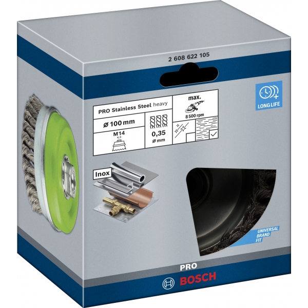 Peria-oala PRO Stainless Steel heavy este un accesoriu durabil pentru orice atelier de prelucrare a metalului unde trebuie sa indepartezi imbinari sudate, rugina groasa, vopsea veche, lac si grund de pe suprafetele din otel inoxidabil si metale neferoase. Am prevazut peria-oala cu sarma cu noduri premium pentru a ne asigura ca o poti folosi pentru lucrari de curatare dificile - din nou si din nou. Foloseste periile-oala cu sarma mai groasa pentru un finisaj rapid si grosier, iar cele cu sarma mai subtire pentru a obtine o suprafata mai neteda.
