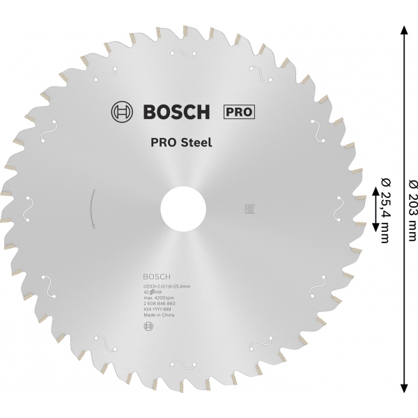 Panza de fierastrau circular cu cablu PRO Steel, 203 x 2 x 25,4 mm