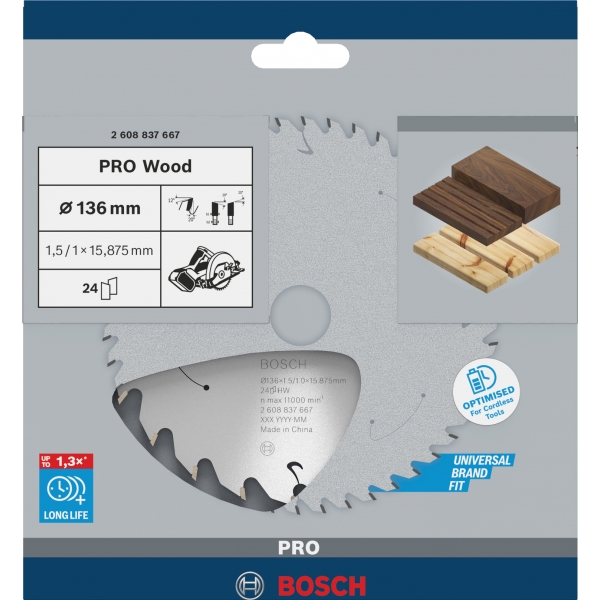 Am fabricat panza de fierastrau circular PRO Wood cordless pentru tamplarii care folosesc ferastraie pe acumulator pentru a taia toate tipurile de lemn masiv si panouri pe baza de lemn. Datorita profilului sau extra-subtire, aceasta functioneaza cu mai putina frecare, utilizeaza mai putina energie si prelungeste durata de functionare a acumulatorului. Panza noastra de fierastrau circular pentru lemn are dinti puternici din carburi pentru a te asigura ca obtii taieturi precise si performante exceptionale pentru o lunga perioada de timp.
