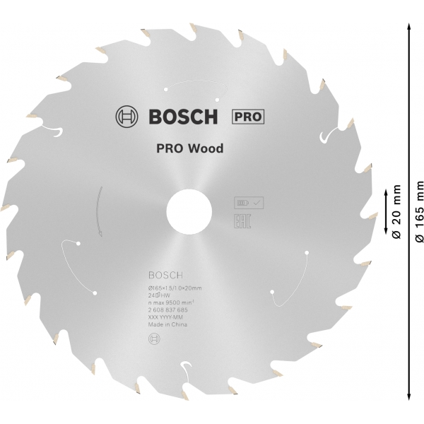 Panza de fierastrau circular PRO Wood cordless, 165 x 1,5 x 20 mm, T24.