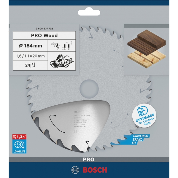 Am fabricat panza de fierastrau circular PRO Wood cordless pentru tamplarii care folosesc ferastraie pe acumulator pentru a taia toate tipurile de lemn masiv si panouri pe baza de lemn. Datorita profilului sau extra-subtire, aceasta functioneaza cu mai putina frecare, utilizeaza mai putina energie si prelungeste durata de functionare a acumulatorului. Panza noastra de fierastrau circular pentru lemn are dinti puternici din carburi pentru a te asigura ca obtii taieturi precise si performante exceptionale pentru o lunga perioada de timp.