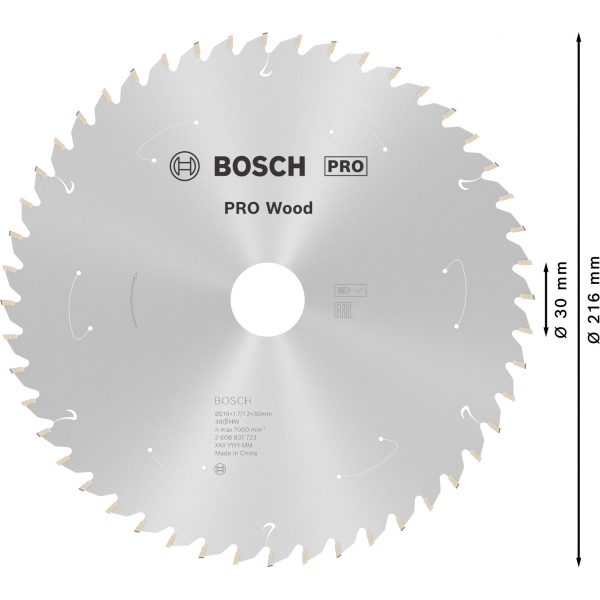 Panza de fierastrau circular PRO Wood cordless, 216 x 1,7 x 30 mm, T48.