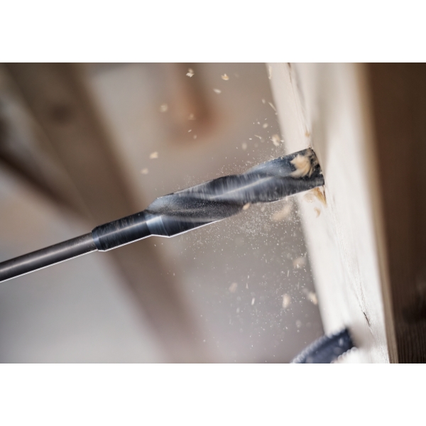 Canal conic pentru gaurire in lemn umed. Canalul conic si tija lunga va permit sa gauriti eficient in materiale dure, cu mai multe straturi, inclusiv in lemn umed.