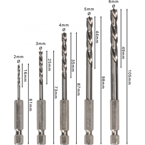 | Informatii suplimentare | Diametru: 2, 3, 4, 5, 6 mm Lungime de lucru: 24, 33, 43, 52, 63 mm Lungime totala: 62, 74, 88, 99, 106 mm |