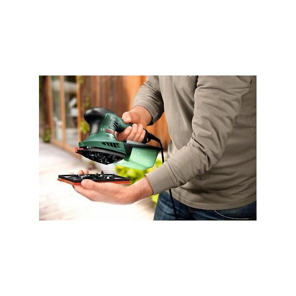 | Informatii suplimentare | Suprafata de slefuire in forma triunghiulara: 104 cm2 Suprafata de slefuire dreptunghiulara: 164 cm2 (92 x 182 mm) Microsistem de prindere cu arici Sistem SDS Bosch Sistem de microfiltrare Preselectia turatiei Sistem electronic Bosch Maner Softgrip |