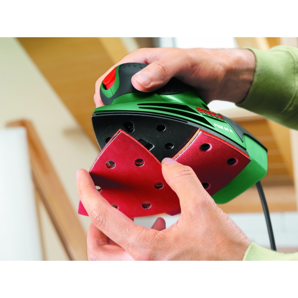 Sistemul de prindere cu arici permite schimbarea usoara a hartiei abrazive.