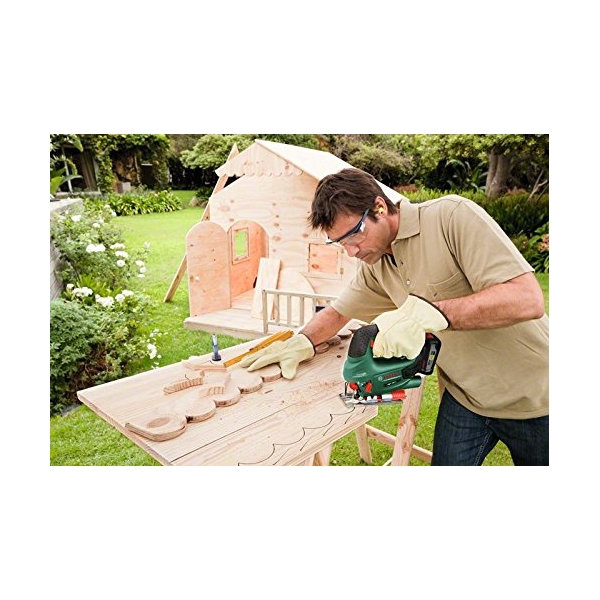 Precizie la prelucrarea oricarui material gratie sistemului electronic Bosch, verificat cu succes in practica: reglarea numarului de curse prin comutatorul cu buton pentru pornirea usoara a fierastraului si lucrul adaptat la structura materialului
