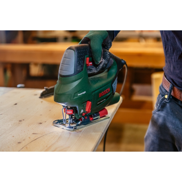 - Utilizare foarte confortabila datorita sistemului SDS bosch, de schimbare rapida a panzei de fierastrau cu o singura mana si fara a fi necesare chei.