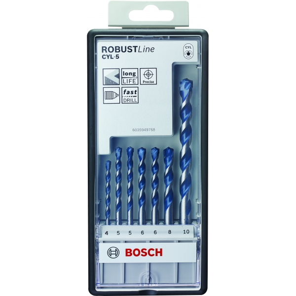 Bosch - Robust Line CYL-3 - Set burghie de zidarie, 4-10 mm, tija cilindrica, 5 bucati