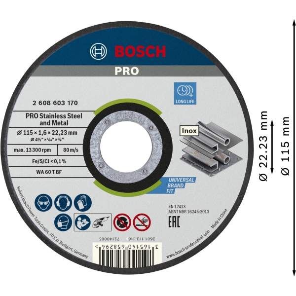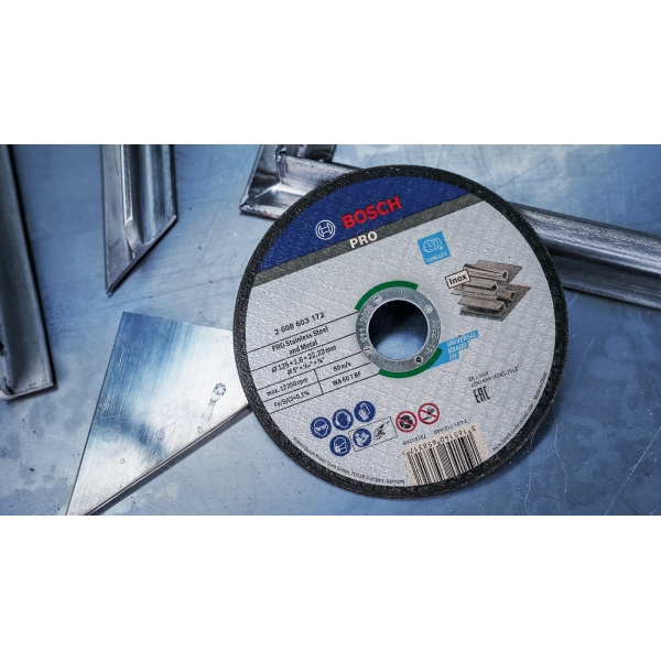 Cu grosimea sa de 1,6 mm, discul de taiere PRO Stainless Steel and Metal este o alegere excelenta atunci cand ai nevoie de un echilibru bun intre durata de viata si viteza. Am folosit granule de oxid de aluminiu premium pentru a asigura rezistenta si durabilitatea. Am combinat granulatia cu materiale de umplutura functionale si aditivi pentru a reduce acumularea de caldura. O plasa din fibra de sticla de inalta calitate intareste discul, facandu-l mai sigur de utilizat. In plus, l-am fabricat fara fier. De aceea, nu trebuie sa iti faci griji cu privire la rugina de pe piesa de lucru, daca tai doar otel inoxidabil.