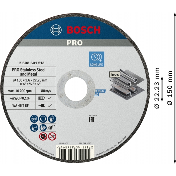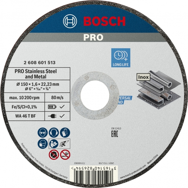 Discul de taiere PRO Stainless Steel and Metal foloseste granule de oxid de aluminiu premium pentru a te asigura ca vei obtine taieturi rapide si eficiente in otel inoxidabil si metal. Am combinat granulatia cu materiale functionale de umplutura si le-am incorporat intr-o matrice de rasina fenolica pentru robustete, rezistenta la caldura si performanta stabila. Am consolidat discul cu fibra de sticla de inalta calitate pentru a ne asigura ca este mai sigur de utilizat. In plus, l-am fabricat fara fier. De aceea, nu trebuie sa iti faci griji cu privire la rugina de pe piesa de lucru, daca tai doar otel inoxidabil.