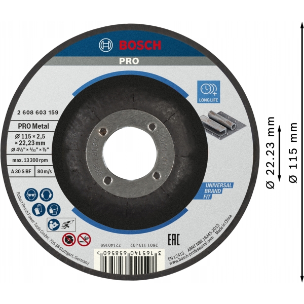 Am fabricat discul de taiere durabil PRO Metal cu granule de oxid de aluminiu premium, pentru a ne asigura ca taie eficient. De asemenea, am combinat granulatia cu materiale de umplutura functionale si le-am incorporat intr-o matrice de rasina fenolica pentru rezistenta mecanica si termica. Am consolidat discul cu o plasa din fibra de sticla de inalta calitate pentru a asigura o performanta mai sigura si mai stabila.