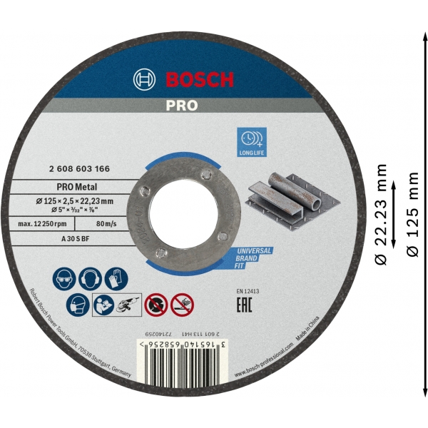 Am fabricat discul de taiere durabil PRO Metal cu granule de oxid de aluminiu premium, pentru a ne asigura ca taie eficient. De asemenea, am combinat granulatia cu materiale de umplutura functionale si le-am incorporat intr-o matrice de rasina fenolica pentru rezistenta mecanica si termica. Am consolidat discul cu o plasa din fibra de sticla de inalta calitate pentru a asigura o performanta mai sigura si mai stabila.