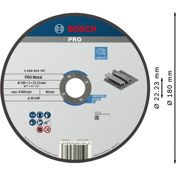 Am fabricat discul de taiere durabil PRO Metal cu granule de oxid de aluminiu premium, pentru a ne asigura ca taie eficient. De asemenea, am combinat granulatia cu materiale de umplutura functionale si le-am incorporat intr-o matrice de rasina fenolica pentru rezistenta mecanica si termica. Am consolidat discul cu o plasa din fibra de sticla de inalta calitate pentru a asigura o performanta mai sigura si mai stabila.