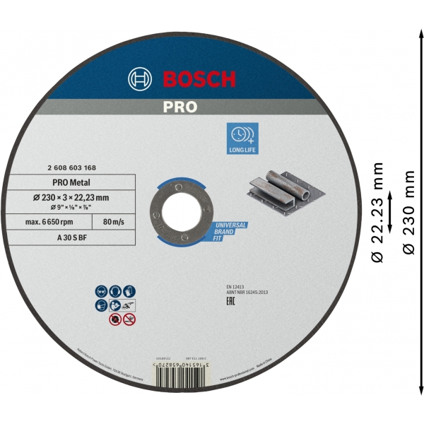 Am fabricat discul de taiere durabil PRO Metal cu granule de oxid de aluminiu premium, pentru a ne asigura ca taie eficient. De asemenea, am combinat granulatia cu materiale de umplutura functionale si le-am incorporat intr-o matrice de rasina fenolica pentru rezistenta mecanica si termica. Am consolidat discul cu o plasa din fibra de sticla de inalta calitate pentru a asigura o performanta mai sigura si mai stabila.