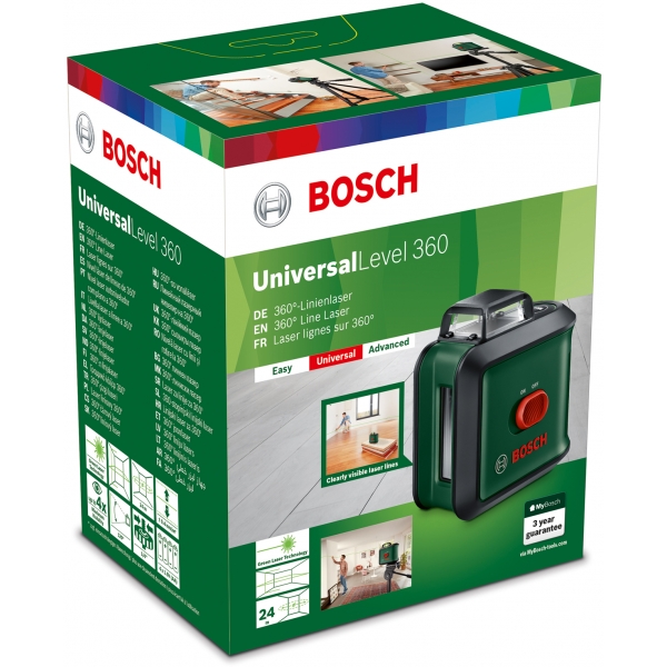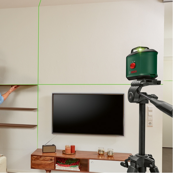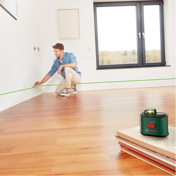 Linie orizontala proiectata la 360 grade pentru aliniere precisa in interiorul intregii incaperi.