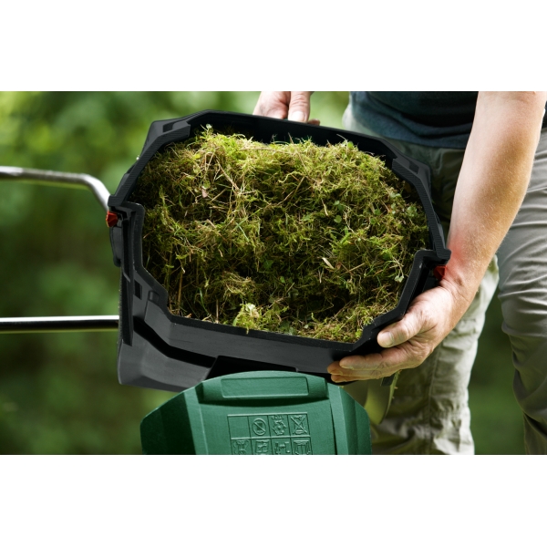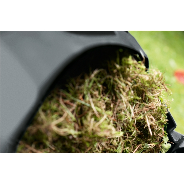 Aplicare eficienta: „Sistemul Jet-Collect” cu orificii speciale de intrare a aerului colecteaza rapid si eficient muschiul si paiele de pe gazon.