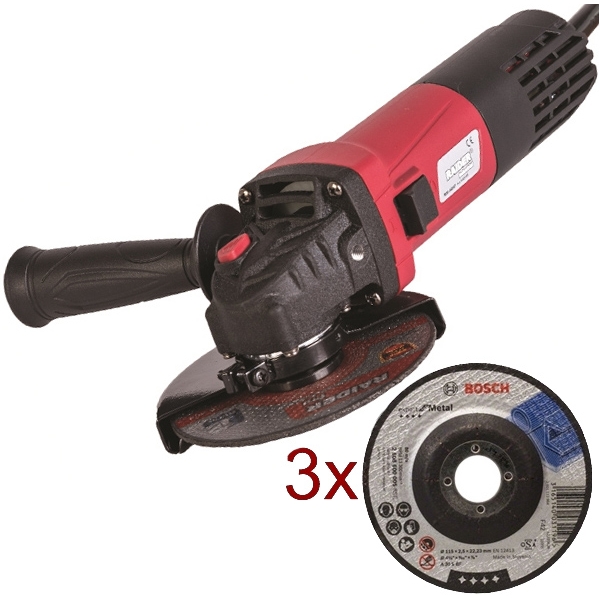 Raider - RDI-AG47 - Polizor unghiular, 1050 W, 125 mm + 3 x Bosch - Expert for Metal - Disc taiere, 115x22.2x2.5 mm, calitate medie